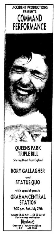 17. 16/08. Victoria, Memorial Arena (Canada) Première partie de Rory Gallagher