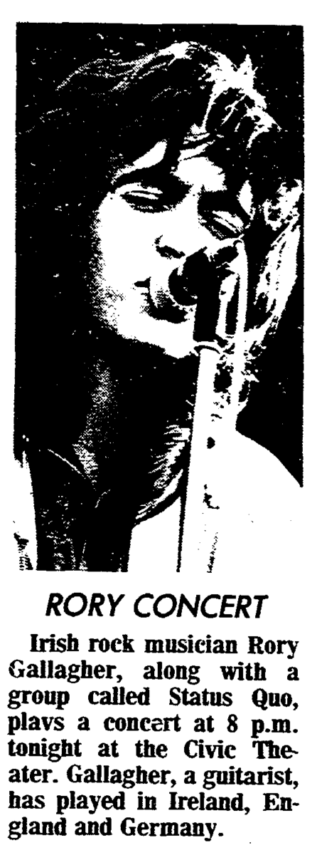 15. 14/08. Colombus, Agora (USA) Première partie de Rory Gallagher