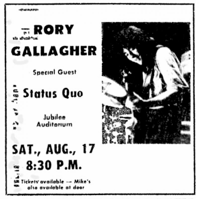 23. 23/08. Kutztown, State collège hall (USA) Première partie de Rory Gallagher
