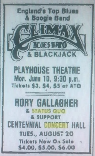 20. 20/08. Winnipeg, Centennial concert hall (Canada) Première partie de Rory Gallagher