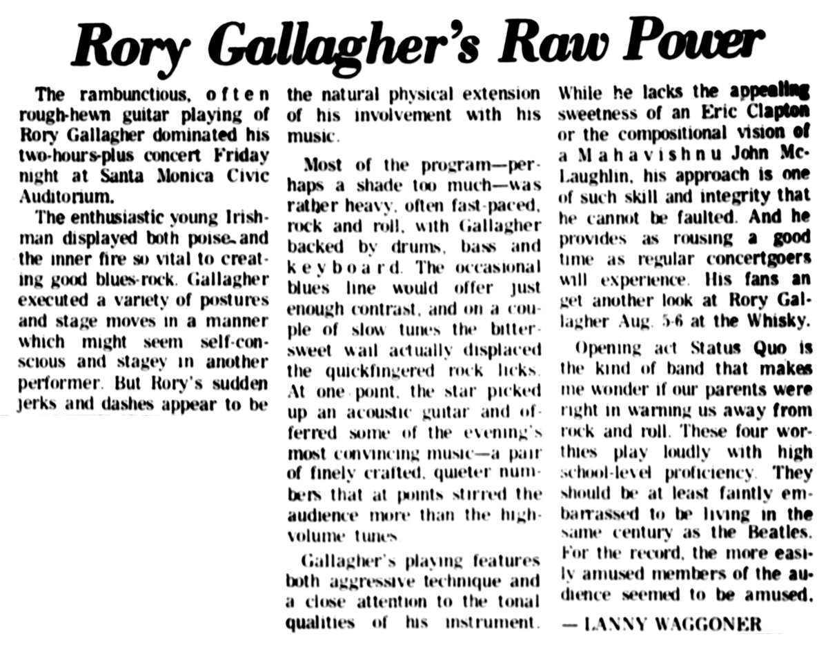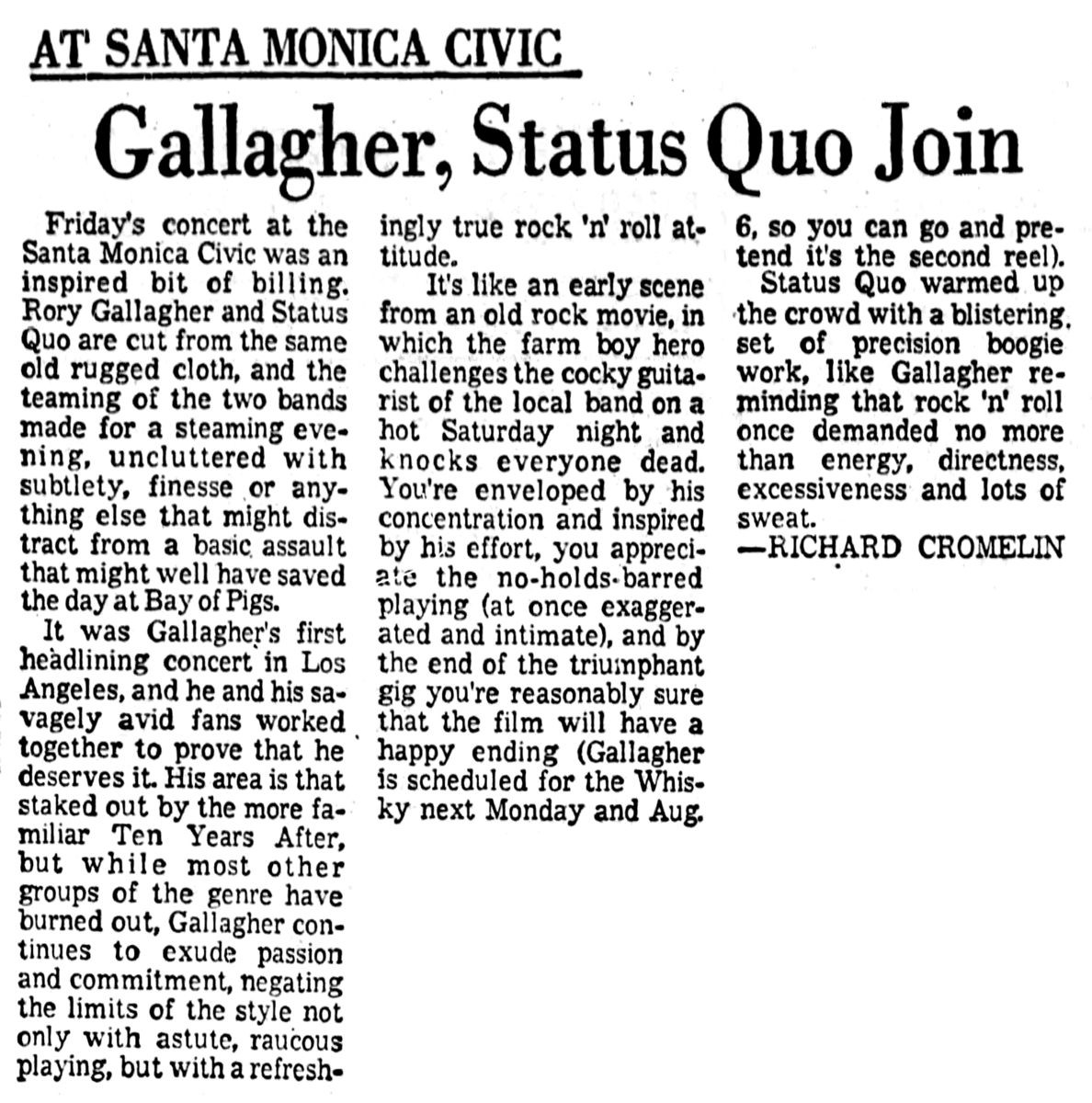 1. 26/07. Santa Monica, Civic Auditorium (USA) Première partie de Rory Gallagher