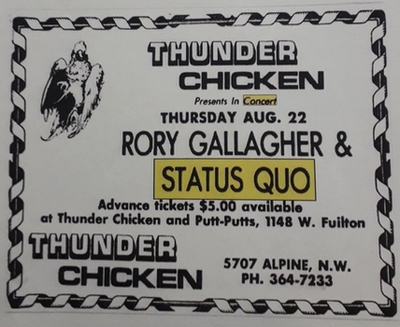 22. 22/08. Grand Rapids, Thunder Chicken (USA) Première partie de Rory Gallagher